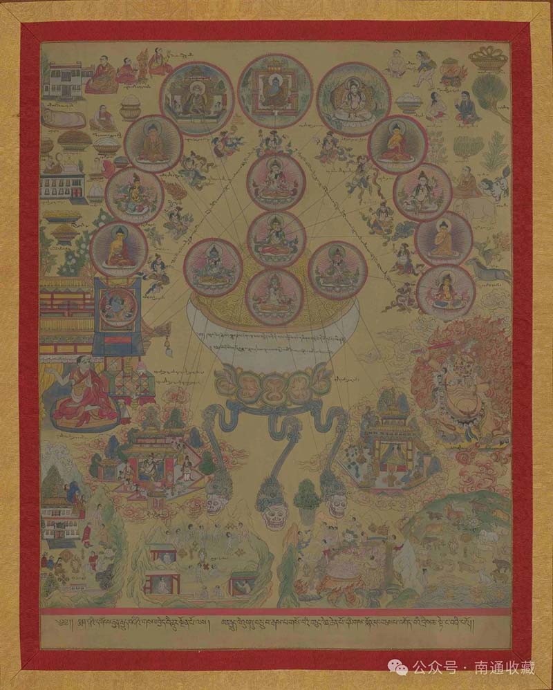 這組藏醫(yī)唐卡共有十幅,圖案精美,內(nèi)容豐富。既有藏醫(yī)基礎(chǔ)知識(shí),如人體解剖結(jié)構(gòu)、胚胎發(fā)育、治病問診和養(yǎng)生預(yù)防等,還有各種臨床技術(shù),醫(yī)用工具的介紹。我十分喜歡,不時(shí)地在自己的中醫(yī)館中展示。在藏區(qū),許多藏醫(yī)院里均珍藏有這些醫(yī)學(xué)唐卡,即使在內(nèi)地的醫(yī)學(xué)院和藥廠也以珍藏此類藏醫(yī)唐卡為榮。