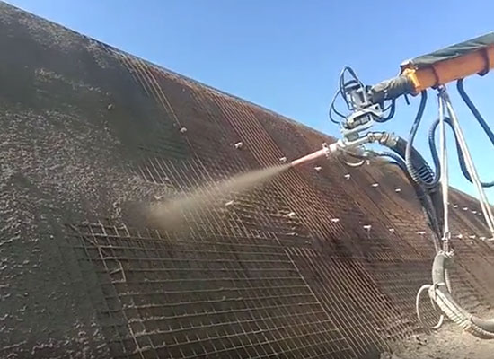 混凝土濕噴機(jī)械手是大型智能化混凝土濕噴設(shè)備,理論噴射排量每小時(shí)30立方?;炷翝駠姍C(jī)械手采用全自動(dòng)無(wú)線遙控操作,智能控制添加液壓速凝劑,能靈活方便的完成各種作業(yè)面的混凝土噴射作業(yè)。混凝土濕噴機(jī)械手廣泛應(yīng)用于鐵路隧道、公路隧道、水利涵洞、礦山巷道、堤壩邊坡、建筑基坑和軍事工程等領(lǐng)域施工中的噴射混凝土支護(hù)作業(yè)。